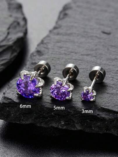1pc Stylish Unisex Dragon Claw & Scale Patterned Purple Cubic Zirconia Stud Earring Made Of Stainless Steel - Earrings - View 1
