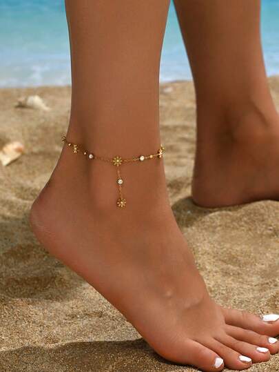 1pc Summer Beach Elegant Gold Fine Chain Anklet With Daisy Pendant, Dynamic And Refreshing, Adaptable Ankle Design Suitable For All Occasions - Yellow Gold - View 1