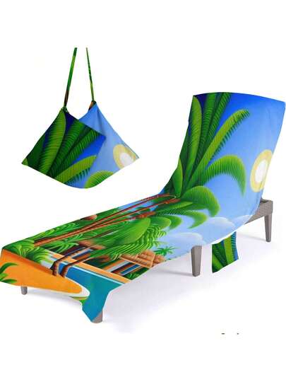 1pc Sun Lounger Cover Towel With Pockets For Beach Chair, Sunbed - Multicolor - View 1