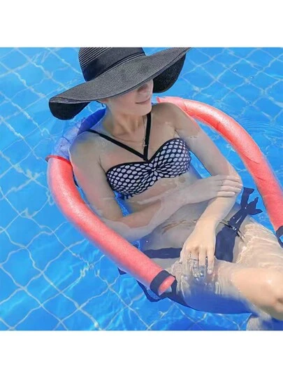 1pc Swimming Training Floaties Equipment - Swim Noodle & Mesh Seat With Portable Net Bag,Summer Pool Float - Red - View 1