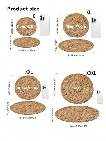 1 Pc Thickened Woven Placemat Round Wicker Heat Resistant Natural Handmade Gourd Shaped Farmhouse Rustic Table Mat Coaster Kitchen Accessory Home Decor Valentines Day Ramadan Decoration - Multicolor - View 11