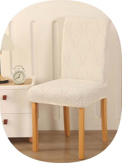 1pc Thickened Pine Leaf Pattern Chair Cover, Solid Color Stretch Full Slipcover, High-End Dust-Proof Chair Cover For Hotel & Home Use - White - View 1
