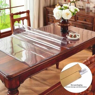 1pc Transparent PVC Rectangular Tablecloth, Suitable For Dining Table, Desk, Nightstand, Coffee Table, TV Cabinet, Shoe Cabinet, Office Desk, Floor Mat, Scratch-Resistant, Durable, Waterproof, Oil-Proof, Heat-Resistant, Easy To Clean, 1mm Thick Crystal Clear Table Protector - White - View 7