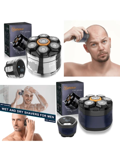 1pc USB Rechargeable Multi-Function Electric Bald Head Shaver, Men's Portable Electric Shaver Razor - Multicolor - View 1