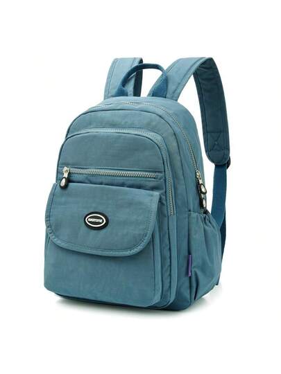 1pc Unisex Multi-Pocket Backpack, Lightweight Nylon Casual Adjustable Backpack Suitable For School, Travel, Shopping, Daily Use - Dusty Blue - View 1