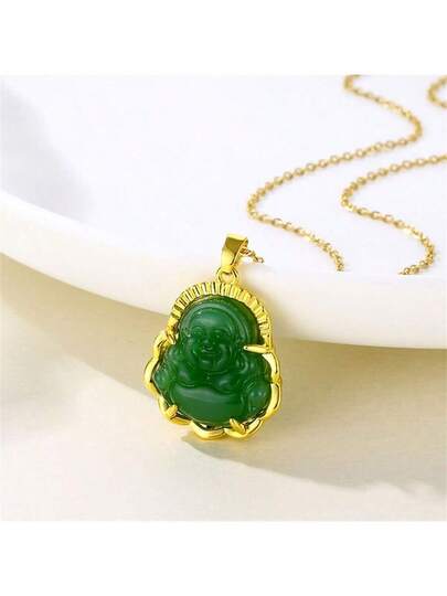 1pc Verdigris Jade Buddha Pendant Necklace, Premium Jewelry Gift For Girlfriend, Friends - Jade Buddha - View 1