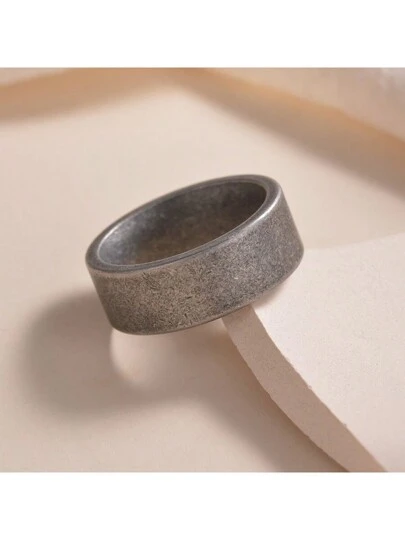 1pc Vintage 8mm Titanium Steel Distressed Decor Ring Suitable For Men's Daily Wear - Antique Silver - View 1