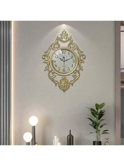 1pc, Vintage Wall Clock, Silent Clock Wall Decoration Wall Clock, Room Decor, Home Decor - Modern Gold - View 1