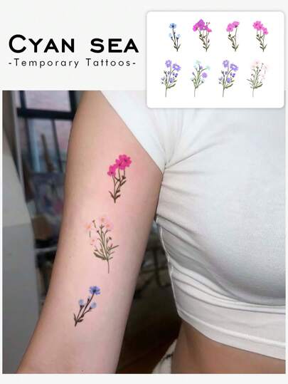 1pc Waterproof, Sweat-Resistant, Washable, Non-Reflective Cartoon Small Flowers & Colorful Floral Temporary Tattoo Sticker, Suitable For Users - Multicolor - View 1