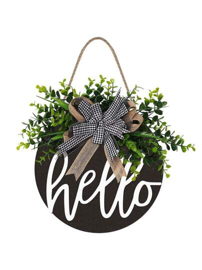1pc Welcome Sign Hello Front Door Round Wooden Sign, Hanging Welcome Sign, Farmhouse Porch Spring Welcome Sign, Front Door Decoration (Whiteboard Hello) - Multicolor - View 1