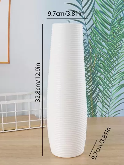 1pc White Ceramic Vase Home Decor Room Decor Flower Vase Glass Vase - White - View 1