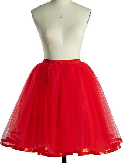 1pc Women's Red Soft Mesh Tutu Skirt With Colored Lining And Two Layers Of Fluffy Mesh Fall Clothes For Women - Red - View 6