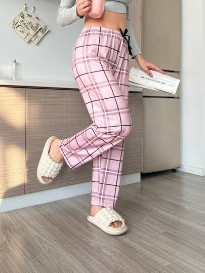 1pc Women Plaid & Random Print Pajama Pants - Multicolor - View 1