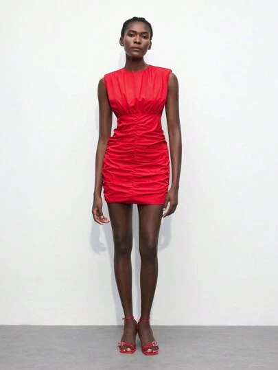 Maija 1pc Women Red Ruched Dress Birthday Outfit Women Red Smocked Dress Romantic, Fashion, Versatile; Suitable For Summer Vacation, Comfortable, Bohemian Style, Beach Wear, Swimsuit Cover-Up, Stylish, Elegant, Casual, , Simple Daily Wear, Country Style, Essential, Solid Color, Holiday Casual, Decent, Single Lady, Ideal For Vacation Elegant Fashion Business Casual Woman Going Out Tops Graduation Outfit European Summer Hawaii Outfits Women Summer Dresses For Women Streetwear Women Stockholm Style Teacher Outfits For Women - Red - View 1