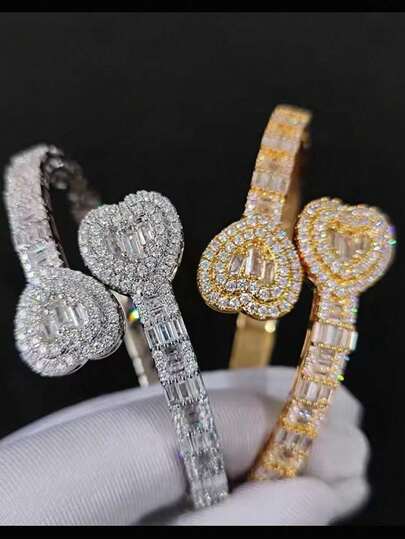 1pc Women's Bracelet - Hip Hop Style Rhinestone Encrusted Luxury Heart Design, Adorned With Rectangular Cubic Zirconia. Fashionable Bangle, A Great Gift Item. - Love Bracelet - View 1