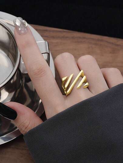1pc Women's Fashionable Simple Square Hollow Grid Adjustable Ring - Yellow Gold - View 1