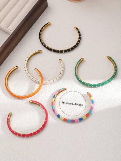 1pc Women's Stainless Steel Gold Color Chic Simple Enamel Bamboo Bangle Bracelet, Suitable For Dating, Party, Office Wear - Bamboo Bracelet - View 12
