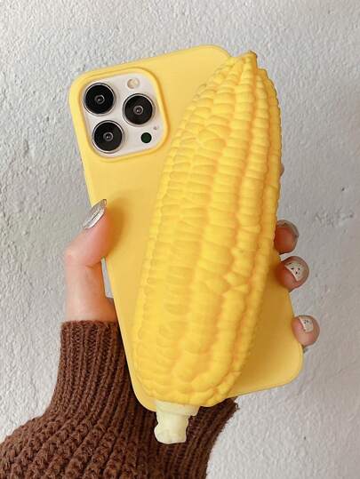 1pc Yellow Corn Bendy Tpu Anti-Fall Phone Case Compatible With Apple Iphone - Yellow - View 4