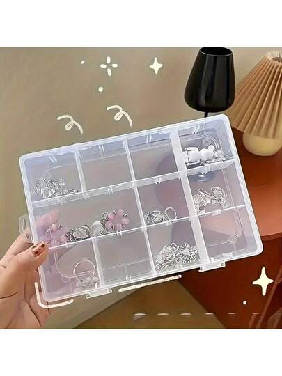 1pcVersatile Clear Plastic Organizer Box With Detachable Dividers - Perfect For Jewelry, Crafts & Small Parts Storage - Clear - View 1