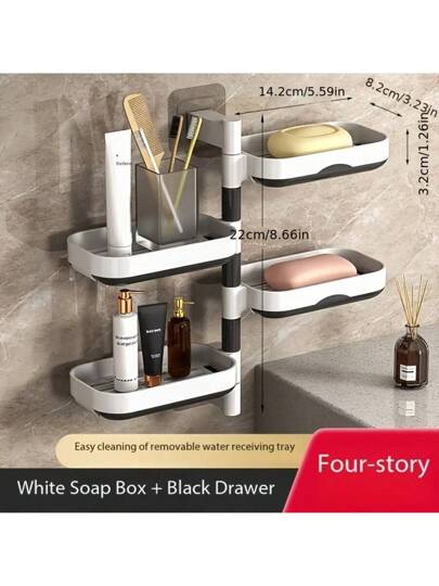 1Piece Of 360 ° Rotatable Wall Mounted Soap Rack - Multi-Layer Non Drilling Bathroom And Laundry Soap Rack With Drainage Design, Oval Plastic Material - White - View 1