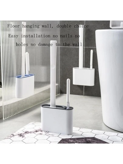 1set 2 In 1 Toilet Brush, Grey Silicone Bathroom Brush With Base, For Home - Grey - View 1