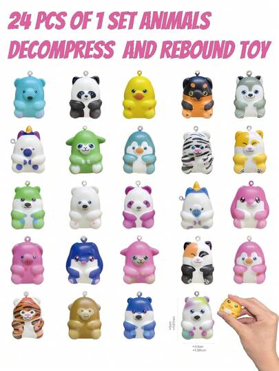 1set 24pcs Cute Animal Slow Rising Squishy Toys For Stress Relief - Randomly Colored Eggshells/fixed 12 Slow Rebound Styles - View 1
