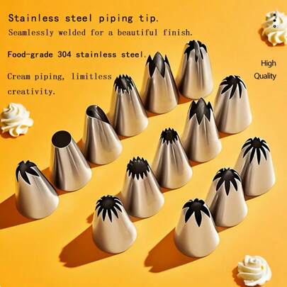 1 Set Of 304 Stainless Steel Piping Nozzles, Suitable For Home And Commercial Production Of Cream Cakes, Cream Puffs, Cookies And Other Baked Goods - Multicolor - View 1
