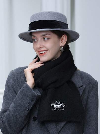 LEAJOURNO. 1set Women'S Fashionable Solid Color Korean-Style Scarf & Grid Pattern Shawl & Knitted Hat Set For Autumn/Winter Warmth - Black - View 6