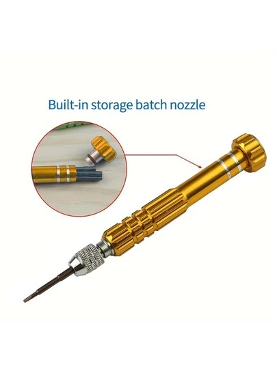 1set Yellow Aluminum Alloy 5 In 1 Screwdriver, Professional Precision Maintenance Disassembly Tool For Phone - Yellow - View 1