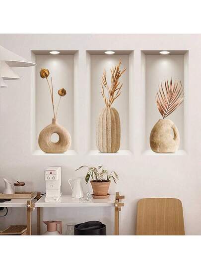 1set/3pcs 3D Effect Art Wall Stickers For Background Decoration - Triptych Style For Foyer And Living Room Decor - Multicolor - View 1