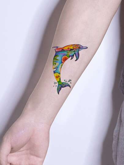1sheet Dolphin Pattern Tattoo Sticker - Multicolor - View 1