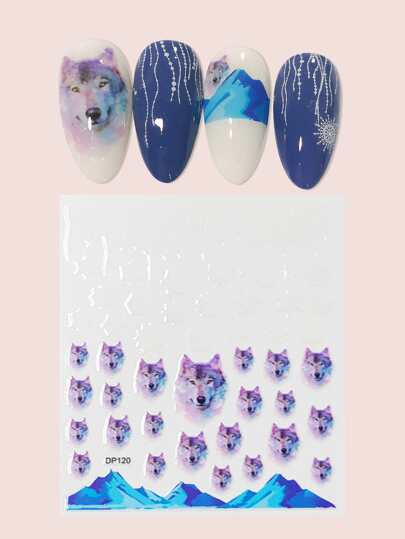 1sheet Wolf Pattern Nail Art Sticker - Multicolor - View 1