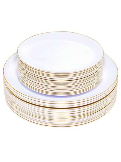 2/10/20/40/50pcs White Rimmed Plates Set, Includes 10.25-Inch Large Plates And 7.5-Inch Small Plates, Suitable For Parties, Birthdays, Weddings And Other Occasions, Optimized Coating Process To Ensure Product Quality - White - View 1
