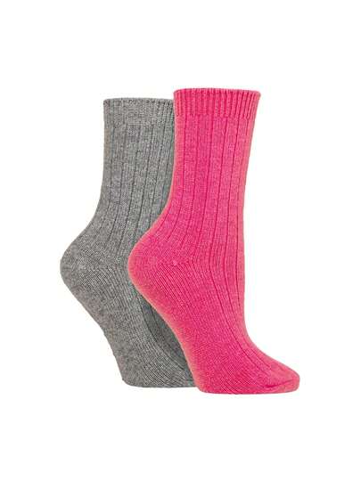 WILD FEET 2 Pack Ladies Cashmere Wool Bed Socks For Sleep (Pink/Grey) - Fast Shipping And Quick Delivery - Multicolor - View 1