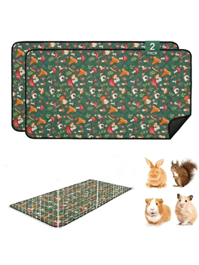 2 Packs Green Mushroom Pattern Guinea Pig Cage Mats - Washable, Reusable, Super Absorbent, Suitable For Rabbits, Hamsters, Guinea Pigs And Other Small Pets - 47.2 Inches X 120 Cm - Multicolor - View 1
