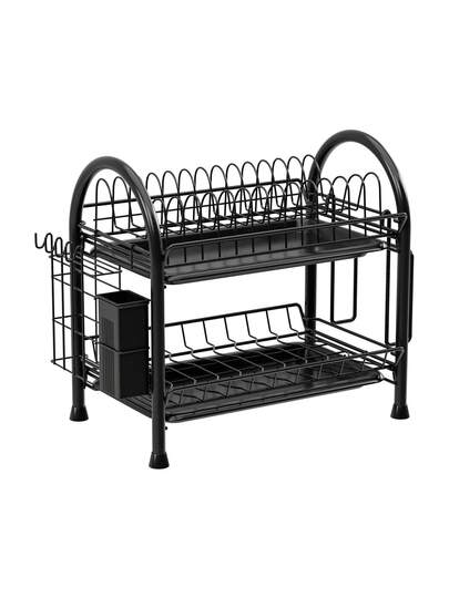2-Tier Round Tubular Frame Dish Rack, Kitchen Plate Holder Cabinet - Black - View 1