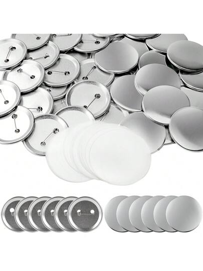 200 Sets Button Maker Supplies – 58mm/2.28" Button Parts Kit – Includes Metal Shells, Pin Back Covers & Transparent Films – Compatible With Badge Making Machines – DIY Craft Supplies - Silver - View 1