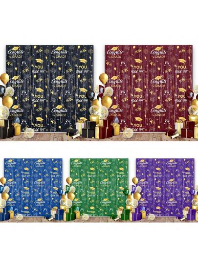 2025 Class Graduation Photography Backdrop Black Gold Glitter Bokeh Graduation Party Background 2025 Congrats Grad Prom Party Decoration Banner (Five Colors Available) - Graduation Season Rain Curtain - View 5
