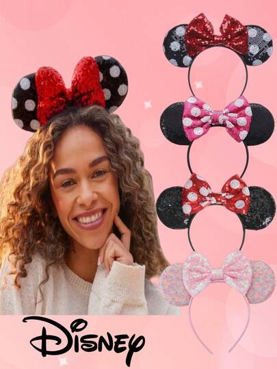 Disney 1pc Series Headband With Soft Bow, Cute Minnie Mouse Ears, Cartoon Decor Hair Accessories Suitable For Daily Wear, Princess Party, Birthday Party, Gift Or Makeup Party, Fashion Hair Accessories For Women, Valentine's Day ,Hair Band Hair Hoop Head Accessories,Disney 1pc Minnie Mouse Ear Sequin Headband - Silver - View 1