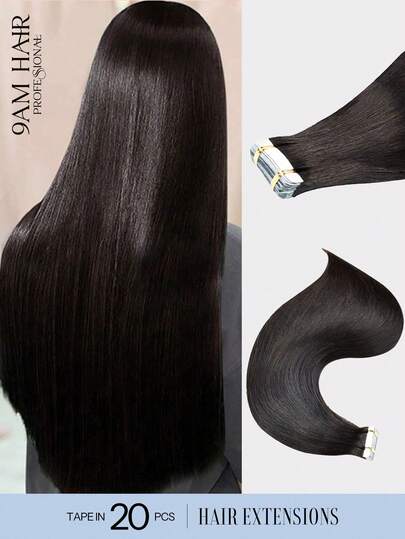 20pcs Tape In Hair Straight Natural Black Color 150% 18-26 Inch Human Hair Tape In Hair Extension Tape In Hair Tape Ins Hair Extensions - SNatural - View 1