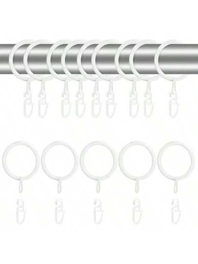 24 Sets White Metal Curtain Rings And Hooks, 30mm Curtain Hooks And Rings, 24 Metal Drapery Hanging Ring & 24 Plastic Curtains Hook, Sliding Eyelet Ring For Curtains Rods Poles - Default - View 1