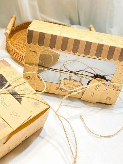 24pcs Cookie Baking Boxes With Window, Sweet Gift Box With Ribbon And Stickers, Chocolate Straw Dessert Box, Cake Gift Packaging Paper - Yellow - View 6