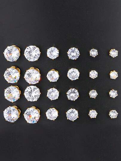 24pcs Fashionable Minimalist Cubic Zirconia Sparkling Earrings Set, Suitable For Party, Date, Gift, Daily Wear - Yellow Gold - View 1