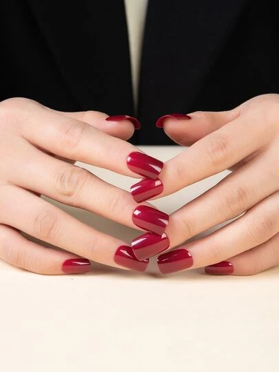 24pcs Short Square Solid Fake Nail & 1sheet Tape & 1pc Nail File - Burgundy - View 1