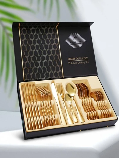 24pcs Stainless Steel Cutlery Set - Gold - View 1