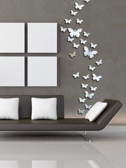 25pcs Butterfly Shaped Mirror Surface Wall Sticker, Silver Decorative Mirror Sticker For Home Decor Gifts Birthday Graduation