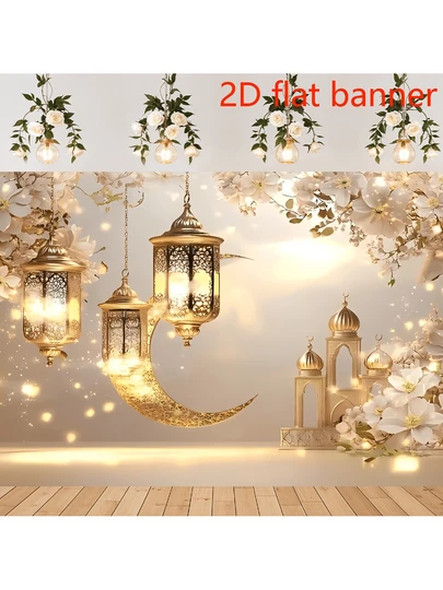 2D Flat Banner 1pc Ramadan Moon And Lanterns Wall Backdrop, Polyester Hanging Decor, No Electricity Needed, Versatile For Christmas, Spring, Summer, Fall, Winter - Photography Background Cloth - 1 - View 5