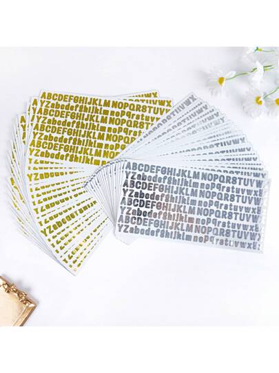 2pcs/5pcs Letter Graphic Assorted Sticker,Gold And Silver, Simple Multi-Purpose Decorative Sticker For Decoration, Hand Account Back To School,Water Cup, Coffee Cup, Name Combination, Ledger, Journal And Memo Decoration,Back-To-School - Multicolor - View 11