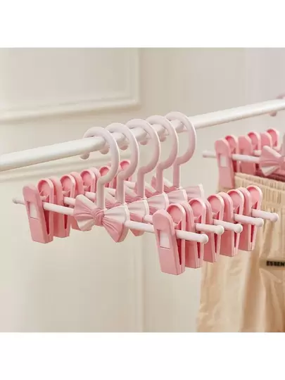 2pcs/5pcs Mini Nonslip Adjustable Retractable Trouser Hanger Clips, Clothes Drying Rack For Home Use Baby & Kids - Pink - View 6