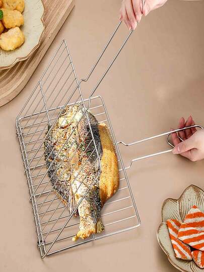 2pcs BBQ Fish Clippers Outdoor Multifunctional Stainless Steel Barbecue Grill Mesh Clip Tool Suitable For Various Meats And Vegetables,Bbq,Picnic,Camping,Garden,Patio,Outdoor,Garden Decor,Outdoor Decor. - Silver - View 1